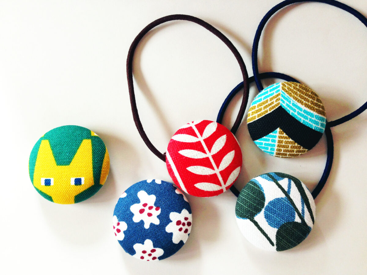 素敵な北欧生地で作る「くるみボタン」はブローチやヘアゴム、イヤリングにアレンジ可能。華やかで美しい色合いがファッションのワンポイントに。