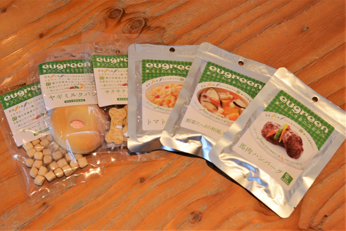 59種類の栄養素を持つユーグレナ配合の馬肉ハンバーグやクッキー、パンなどを販売。貸出ボウルもあり、湖を臨むテラス席では愛犬も一緒にお食事ができます。