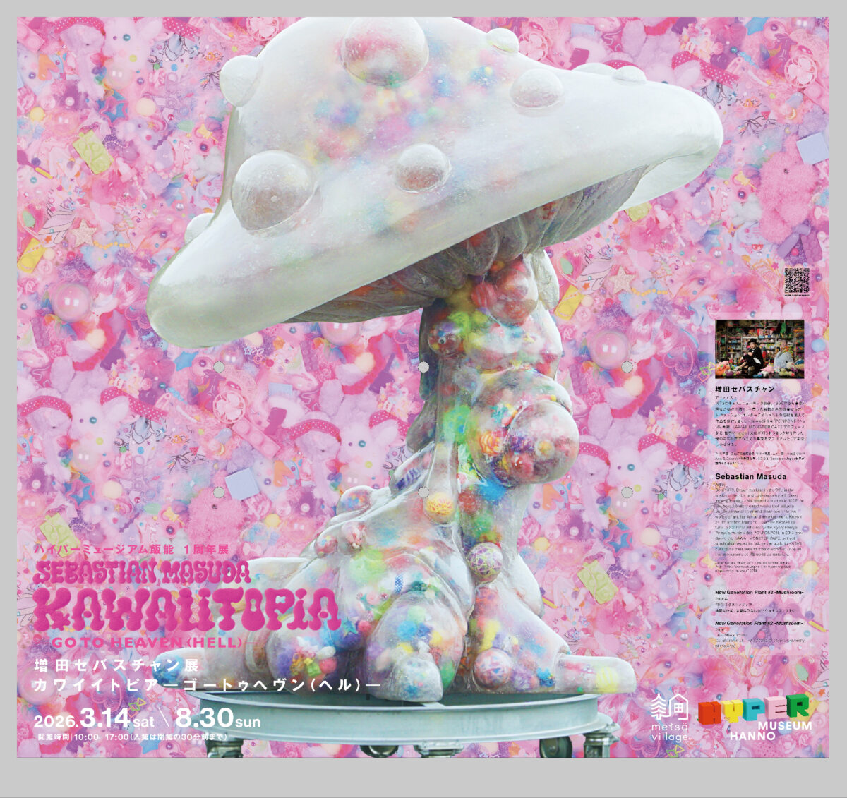 ハイパーミュージアム飯能開館1周年展は、日本のポップカルチャー「KAWAII」の第一人者であり、世界中にファンを持つアーティスト・増田セバスチャンによる「KAWAIITOPIA -GO TO HEAVEN(HELL)-」(カワイイトピア ゴー トゥ ヘヴン (ヘル))!