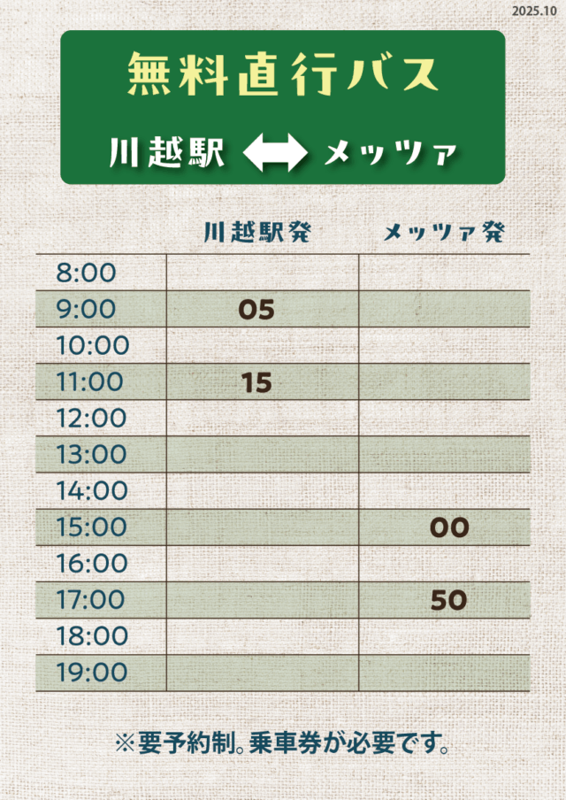 【川越発着無料直行バス案内】