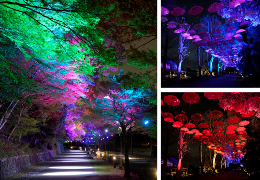 人気のスポット、スナフキンのテントに向かう途中の四季の道や、灯台、水浴び小屋などもプロジェクションマッピングで華やかに。歩くたび不思議な体験ができます。