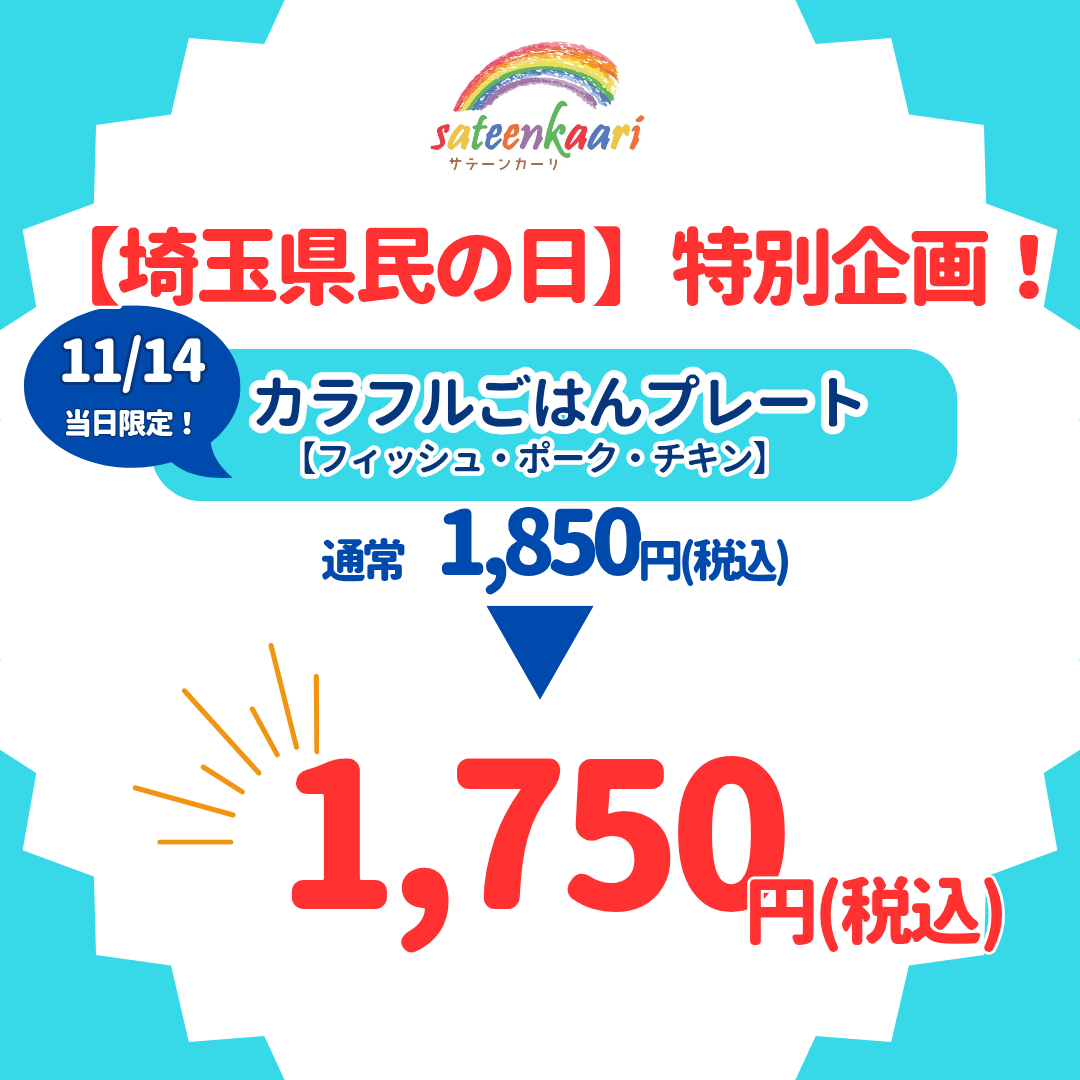 当日はカラフルごはんプレートが100円OFF!