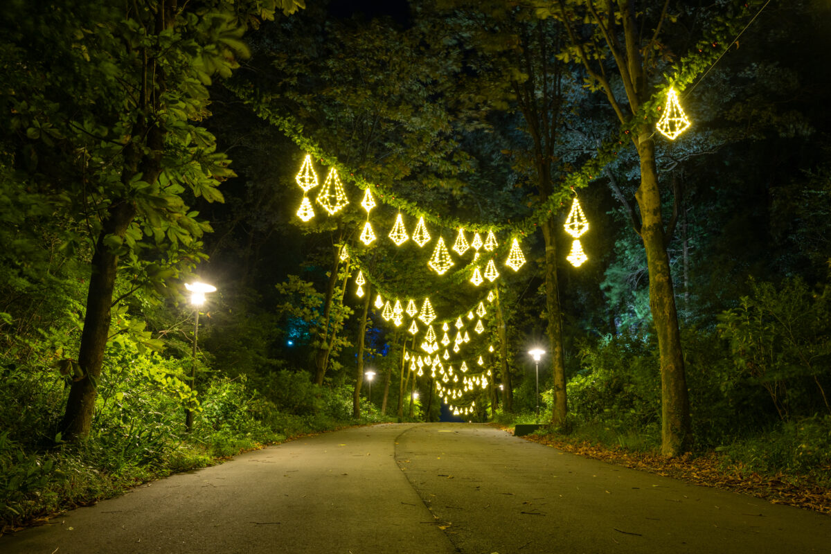 今年もメッツァのエントランスロード約100mには、大小さまざまな100個のフィンランドの伝統的な工芸品「ヒンメリ」をモチーフにした「天空のヒンメリロード」が登場。今回は場内にもエリアを拡大し、幻想的な光の空間が広がります。あわせて室内では、リトアニアのユネスコ無形文化遺産の伝統装飾「ソダス」を展示。