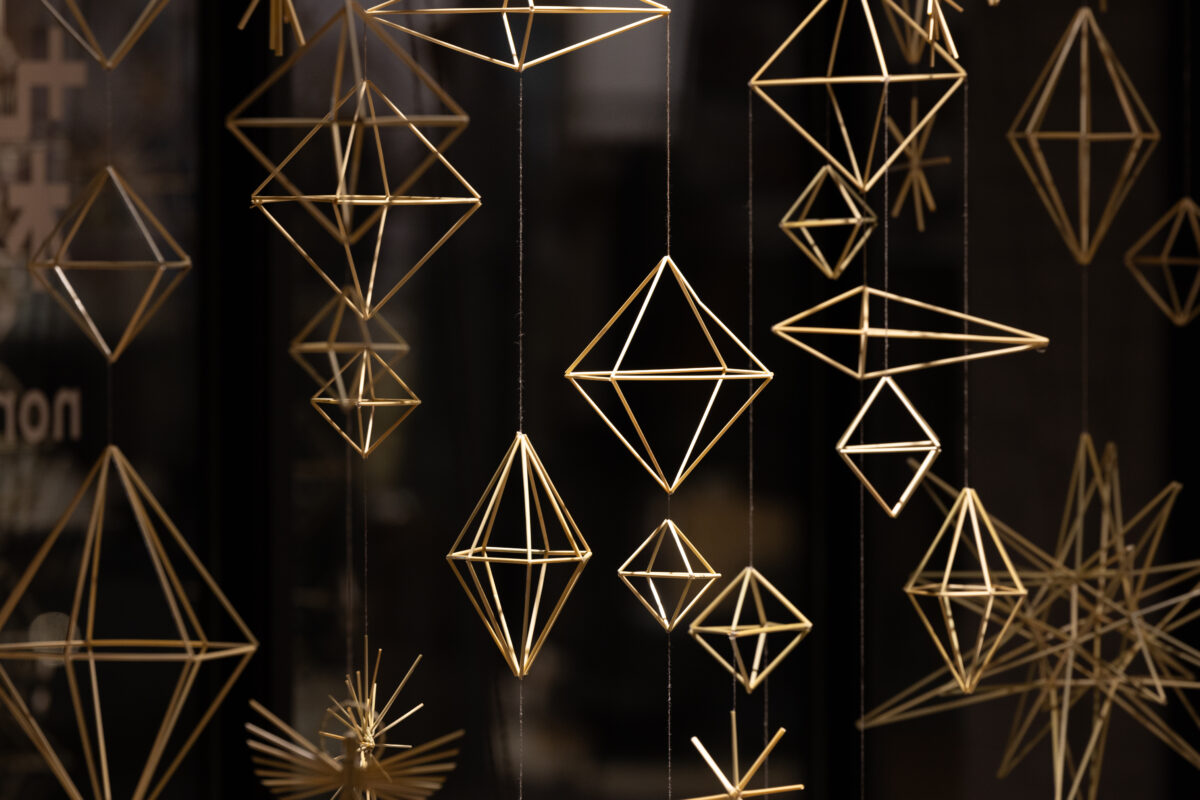 リトアニア共和国農業省公認のソダス作家・本多桃子氏による、麦わらの茎を編み上げた美しい装飾。ソダスの特徴の一つである星と、大きいものでは30cm近い氷や雪のモチーフ、多面体の立体などを組み合わせた空間で空気の流れを受けて揺れるソダス展示は、1階・2階のどちらから眺めても楽しめます。
