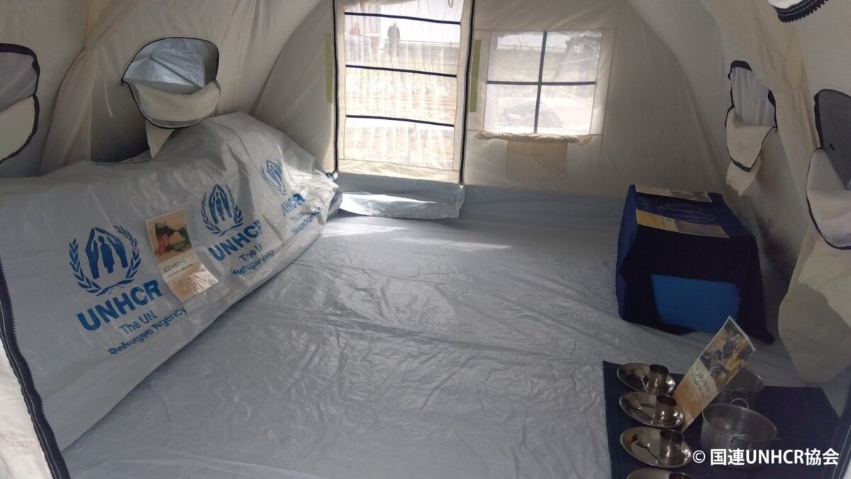 テント内には、難民キャンプで使用されている食器やソーラーランタンなども展示。実際にテント内に入ってご覧ください。