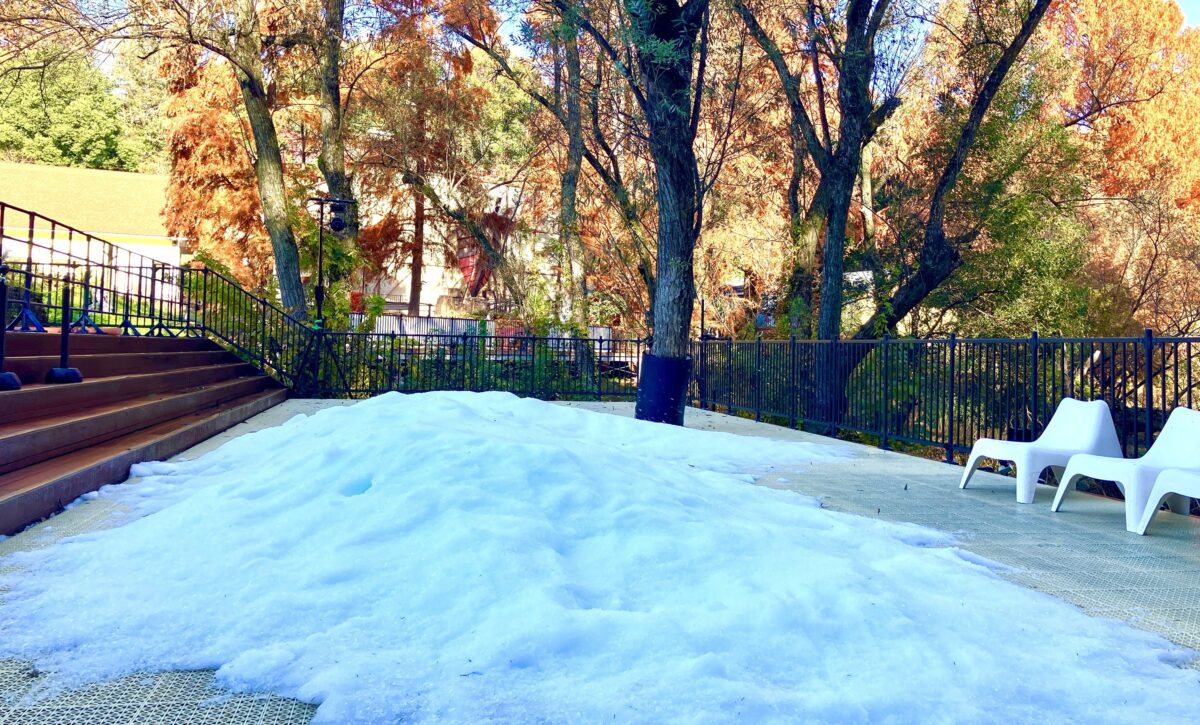 入り江のテラスの「ゆきあそび広場」は、人工造雪機による雪で、小さなお子さまでも楽しく遊べるエリア。雪だるまをつくったりして遊ぼう!