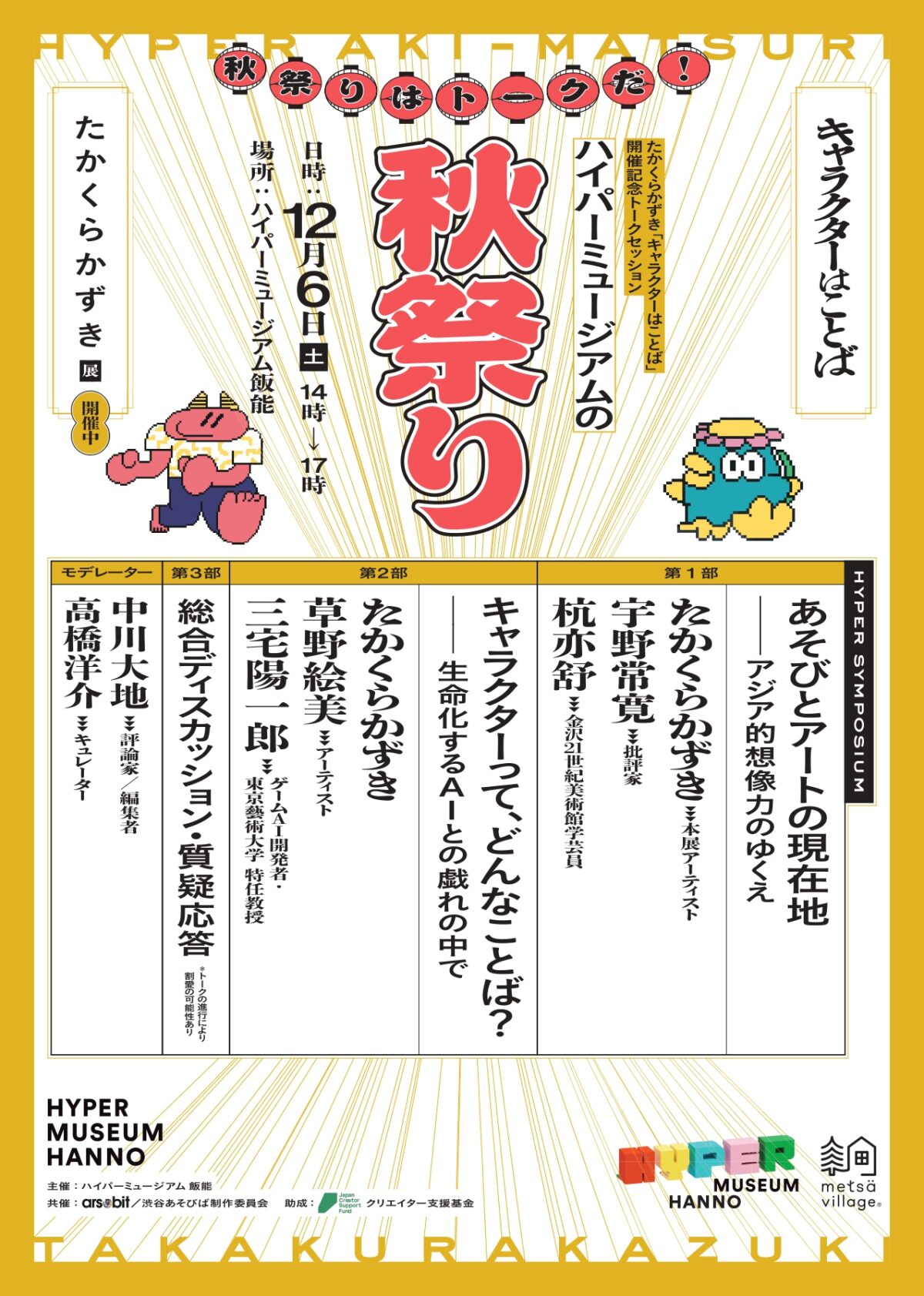 ハイパーミュージアム飯能でのたかくらかずき展「キャラクターはことば」(2025年11月16日〜2026年3月1日)の開催記念トークセッション「ハイパーミュージアムの秋祭り」を開催!