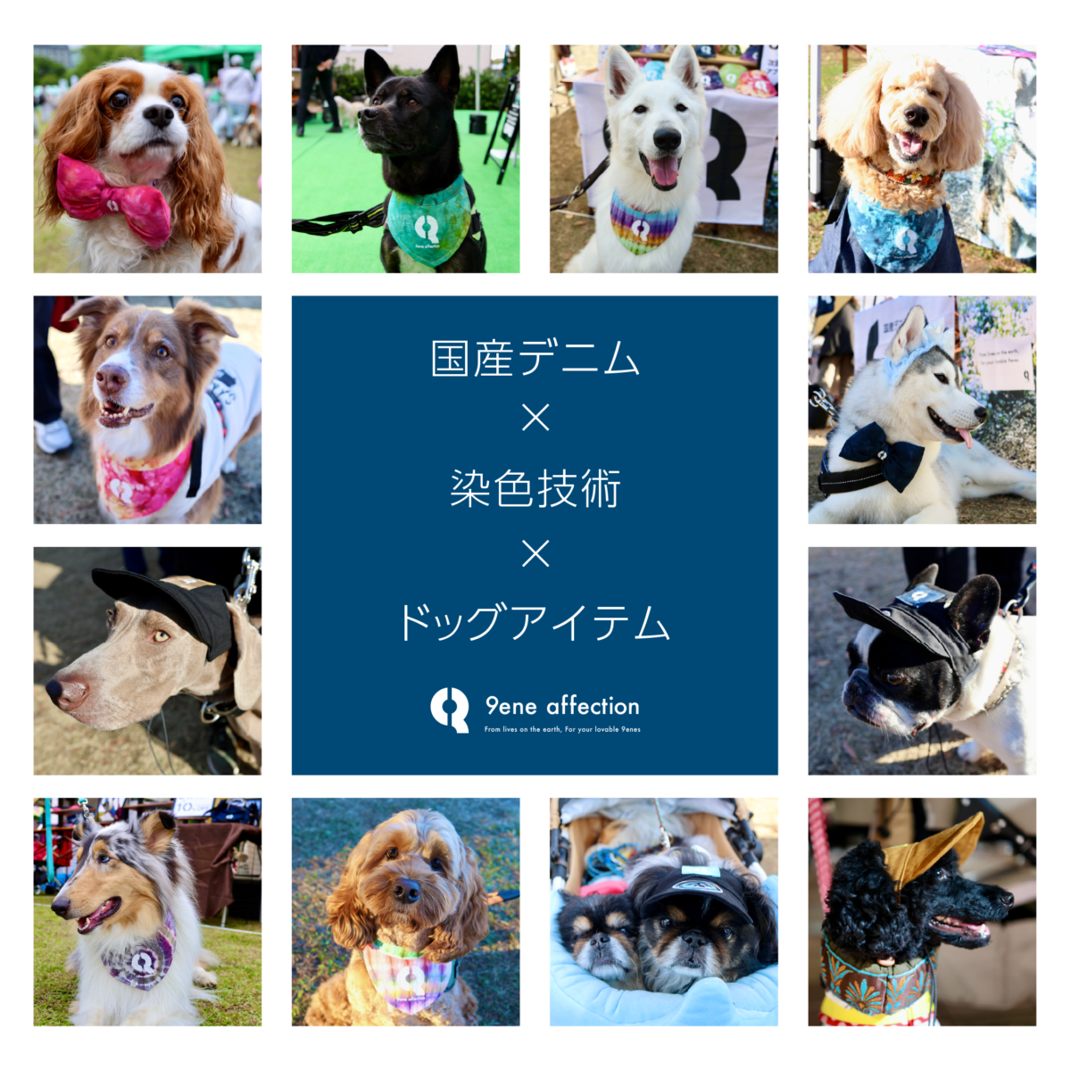 9ene affectionは、岡山県産デニムを使用した、生き物のエネルギーを纏う唯一無二の染色ペットアイテムを届けるブランドです。