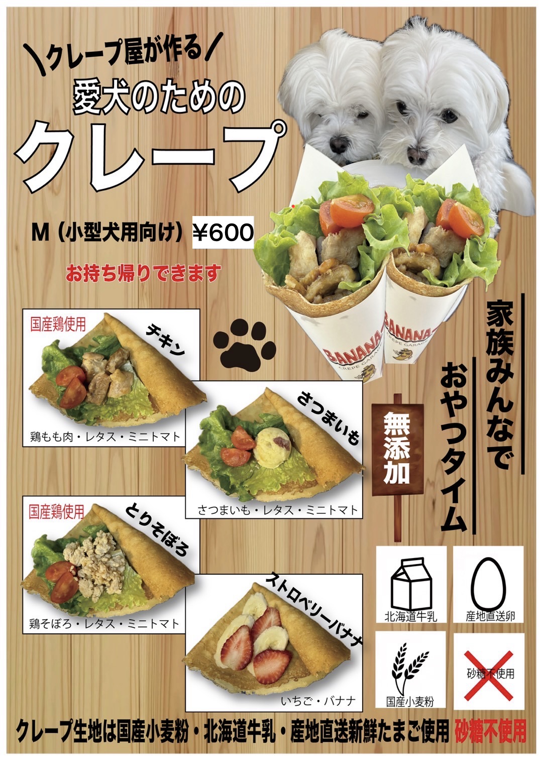 大切な家族の一員だからこそ、一緒に、安心して食べてもらえる特別なクレープです。