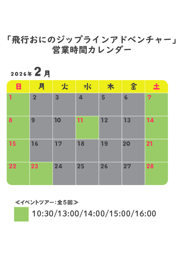 1日全5ツアー ①10:30②13:00③14:00④15:00⑤16:00 ■所要時間 約45分~60分 ※天候などの状況により、運営の見合わせ及び中止させていただく場合があります。 |