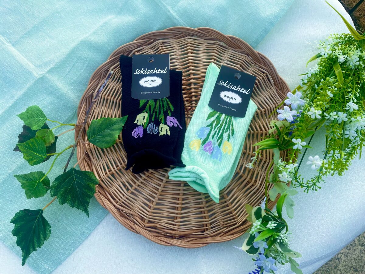 ソキサヘテルのチューリップ柄靴下