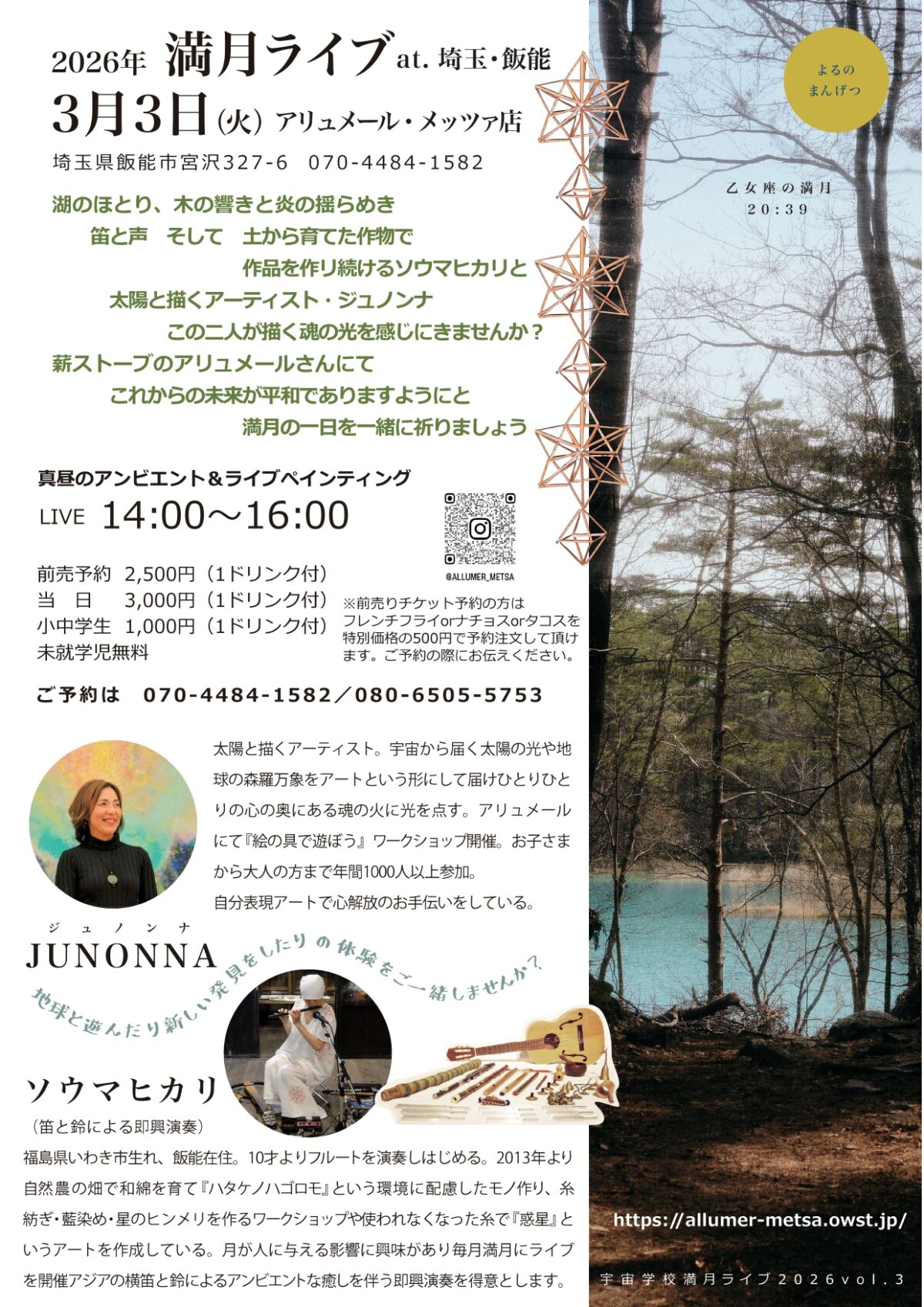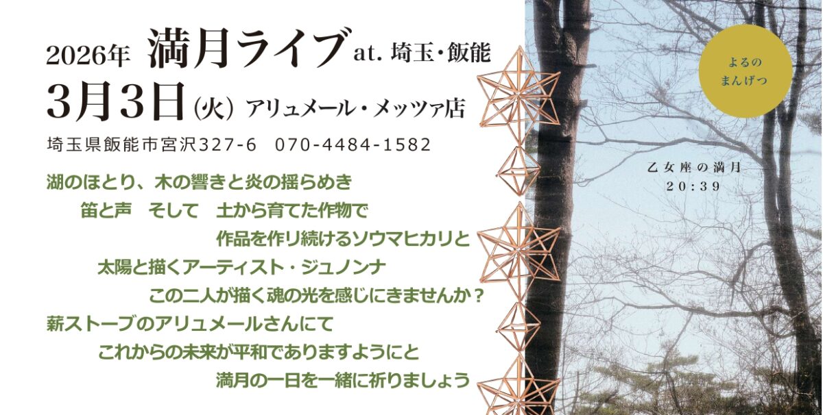 \アリュメールにて、ソウマヒカリさん(笛と鈴による即興演奏)&ジュノンナさんのライブを開催!/