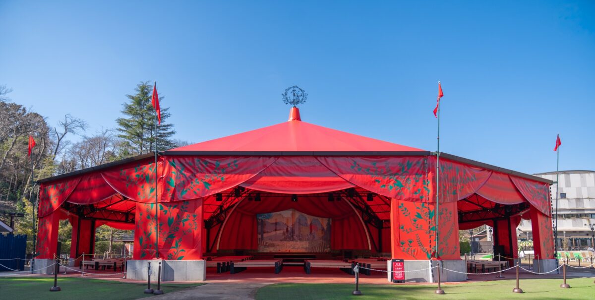 「エンマの劇場」は、大型テントを備えた待望の全天候型シアターとしてリニューアル。さらに新たな音響・照明・映像システムに加え、地元飯能市の「西川材」を使用したぬくもりあるベンチを完備した、一日を通してムーミン谷の仲間たちによるショーや、映像×音の演出が楽しめるムーミンバレーパークの新たなランドマークに。