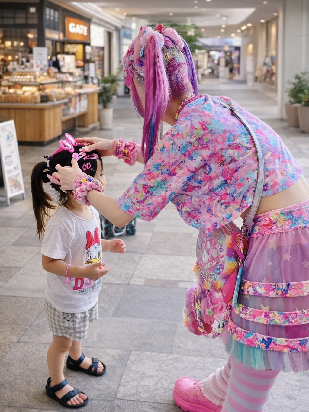 *デコラとは:デコラティブ(装飾的)の略で、1990年代に原宿で生まれたファッション。主に前髪をヘアピンで留め、ネックレスや指輪などの重ね付けや、ぬいぐるみの小物を身につけるスタイル。Y2K(2000年代初頭)ファッション流行に伴い世界的に再注目中。