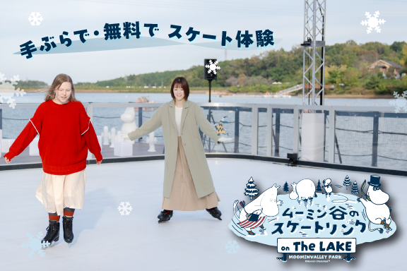 ムーミン谷のスケートリンクが今年は湖上のテラスにオープン!まるで湖の上をすべる体験を楽しめます。夜間はライトアップやプロジェクションマッピング。