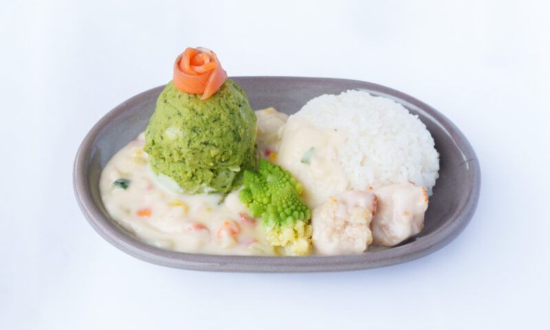 バジル香るマッシュポテトとサーモンでツリーを表現しています。