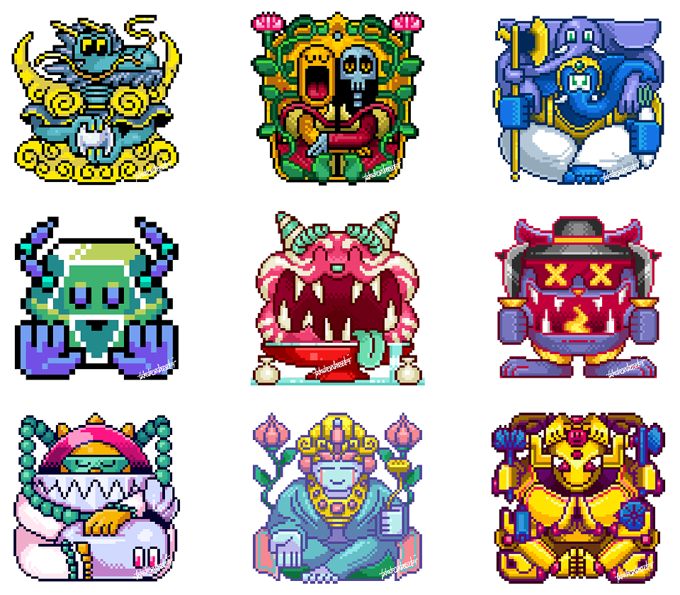 展覧会場の中や外に、オニとカッパや十二支、仏教神道、妖怪変化など、彼が生み出すキャラクターが集結。ここに来れば、昼からゲームナイトで遊べるよ。そして、真ん中には4メートルの巨大守護神ハイパーマンも鎮座!展覧会中に、秋祭り、初詣、春祭りなどのイベントも盛りだくさん計画中!