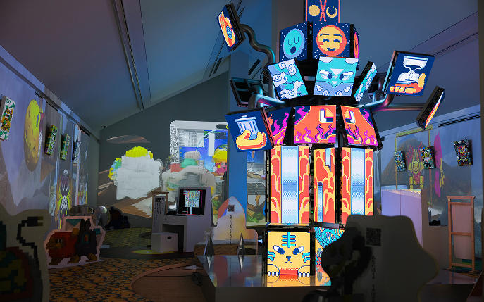 たかくらかずきは、アートとデジタルゲームをつなぐアーティスト。次々に、新しいゲームを開発しているのです。そして、それ自体が東洋思想にインスピレーションを得た世界観から生み出された、キャラクターとストーリーを持つコンテンポラリーアート作品です。展示会場各所にPCが設置され、実際にプレイして遊べます!