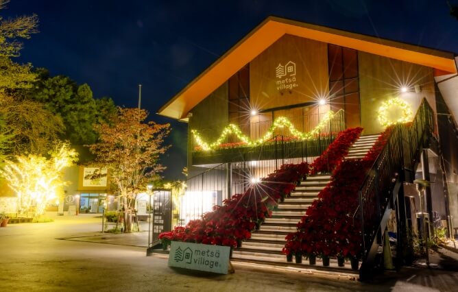 クリスマスツリーも鮮やかにライトアップ。ムーミン屋敷にもプロジェクションマッピングが