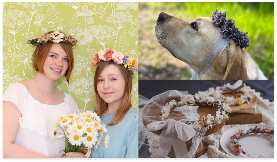 花冠のワークショップは所要時間30分。数種類ご⽤意した、ドライフラワー、プリザーブドフラワーをお好きに組み合わせで紡ぎ花冠を制作しましょう。