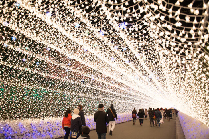 ここを訪れたら、全長70mのイルミネーショントンネルをぜひ歩いてみてください。