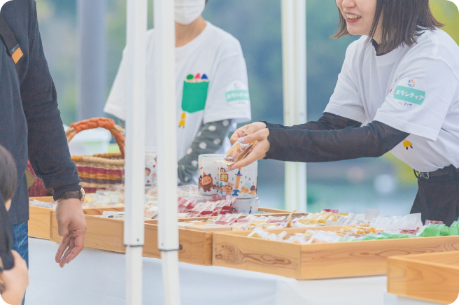 ワークショップを担当する福祉事業所のスタッフ等がすぐそばで丁寧にサポートするので、小さなお子さまから大人まで、誰でも安心してご参加いただけます。