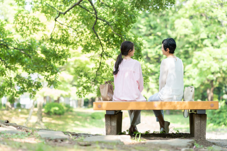 ベンチに座って景色を眺めたり、軽く散策をしたりと、お母さんに合わせて無理のないペースで過ごせるのも魅力。