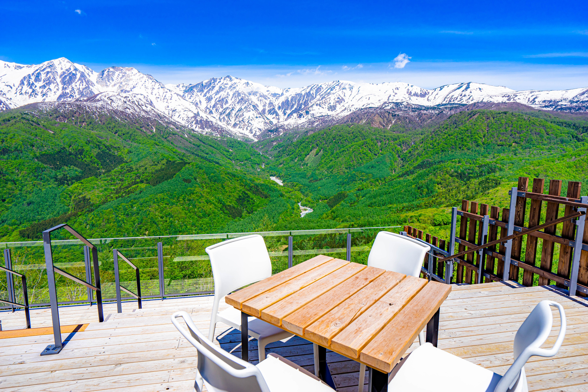 テラス席に出れば、雄大な自然がさらに近くに広がります。