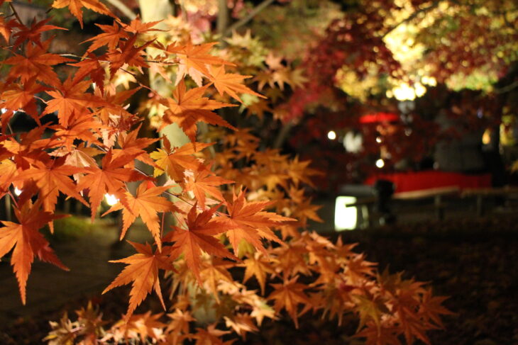 秋の夜風を感じながら、光に照らされた紅葉の美しさを探しに出かけてみませんか。