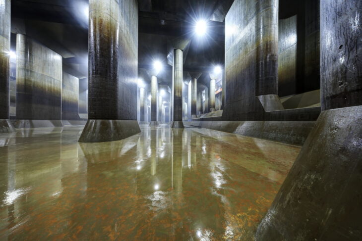 地下神殿とも呼ばれる調圧水槽には、人工的な広い空間に高さ約18mの柱が無数に並び、そのスケール感と神秘的な雰囲気に思わず圧倒されます。