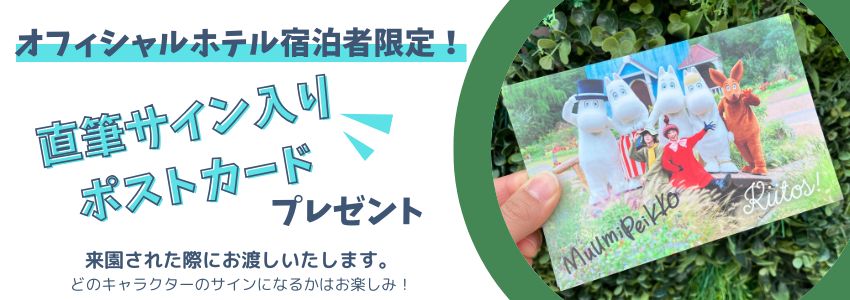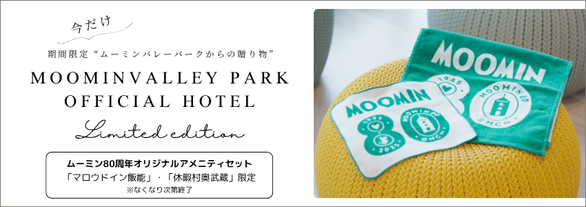※上記特典は、各ホテルが提供しているムーミンバレーパーク1デーパス付きプランでご宿泊の方のみが対象となります。贈り物の内容やプラン詳細はご宿泊されるホテルまで直接お問い合わせください。