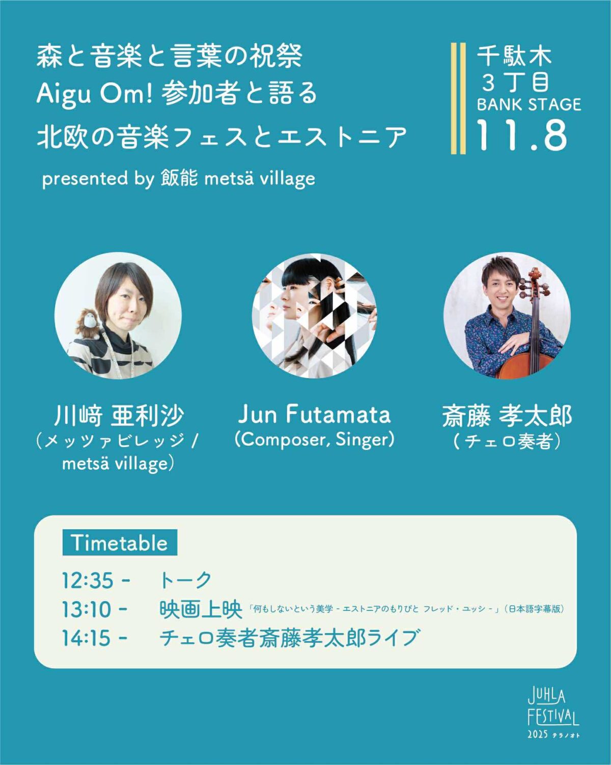 2025年11月8日、9日で開催される文京区千駄木のお寺を舞台とした、北欧フィンランドのアーティストが出演する音楽の祝祭「JUHLA FESTIVAL 2025」にメッツァビレッジがコンテンツ協力・出演します。
