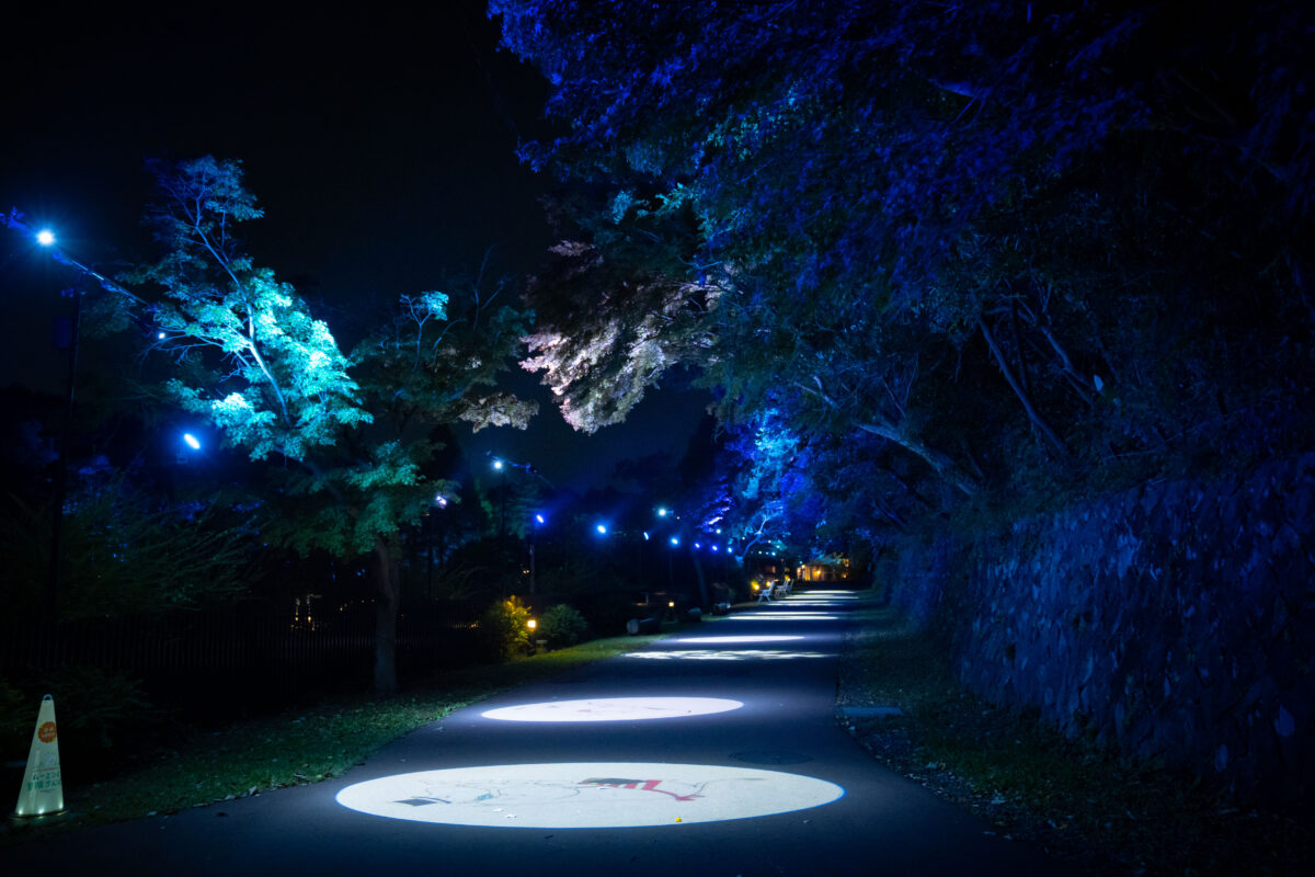 日没とともにパーク全体が様々なライトアップに照らされ、幻想的な冬のムーミン谷を演出します。ムーミン屋敷の両側に立つメタセコイヤの LED ライトや、ムーミン谷エリアの上空に現れるオーロラ、スケートリンクに投影されるプロジェクションマッピングなど、色鮮やかなライティングで非日常の空間になったパークは必見です。
