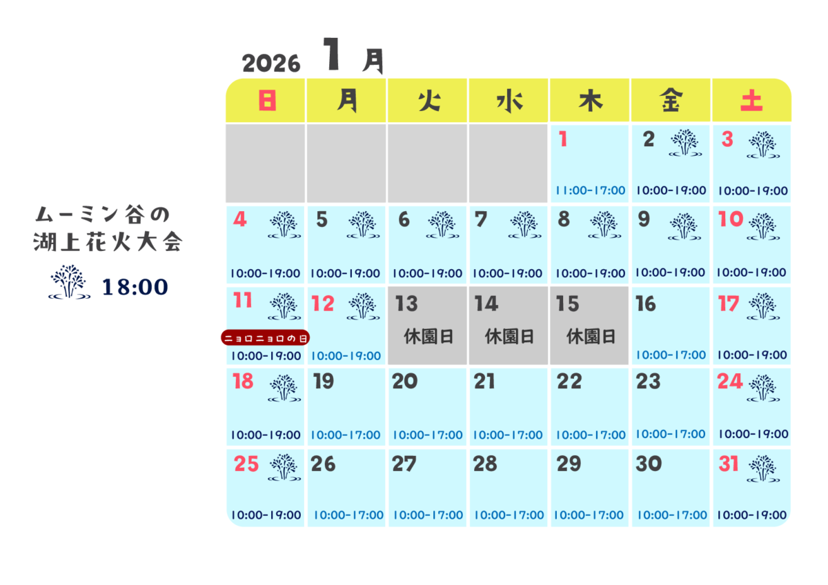 2026年1月の「メッツァ(ムーミンバレーパーク / メッツァビレッジ)休園日に関して、以下の通り、お知らせいたします。