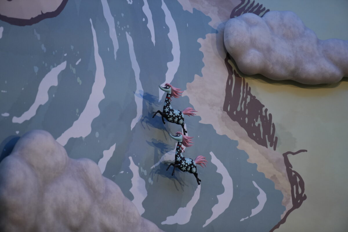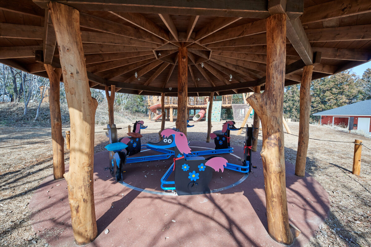 パーク内では、KOKEMUS 2F/3Fのジオラマや、2Fの展示エリア、「はなうま」をモチーフにした遊具「はなうまのメリーゴーランド」などで見つけることができます。