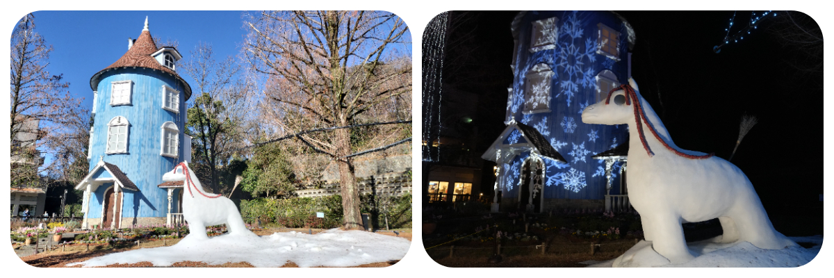 ムーミンバレーパークでは、冬のイベント「WINTER WONDERLAND2025 in MOOMINVALLEY PARK」が始まり、ムーミン屋敷のベランダのそばに全長4mの「雪のうま」が今年も登場!さらに今年は、人工造雪機により雪の中に佇む「雪のうま」を再現!物語の中のムーミントロールのように見上げてみてください。