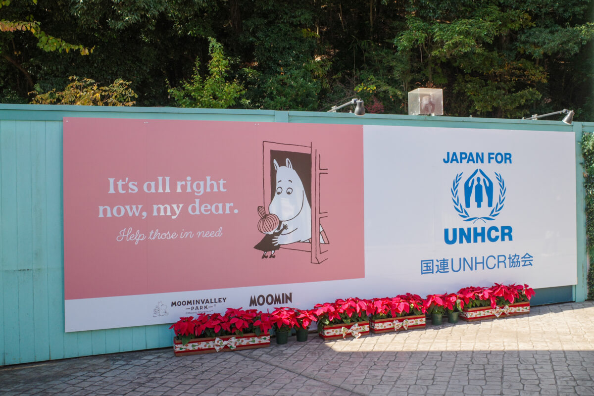 イベント開催期間中、本キャンペーンのためにつくられたムーミンバレーパーク キャンペーンオリジナルアートと国連UNHCR協会のロゴが来園者を出迎えたり、難民の子どもたちが大切にされ、価値を認められていると感じながら子ども時代を送ることができるように助けるという、キャンペーンの目標を体現したキャッチコピーを使ったアートが、ムーミンバレーパーク内に展示されました。