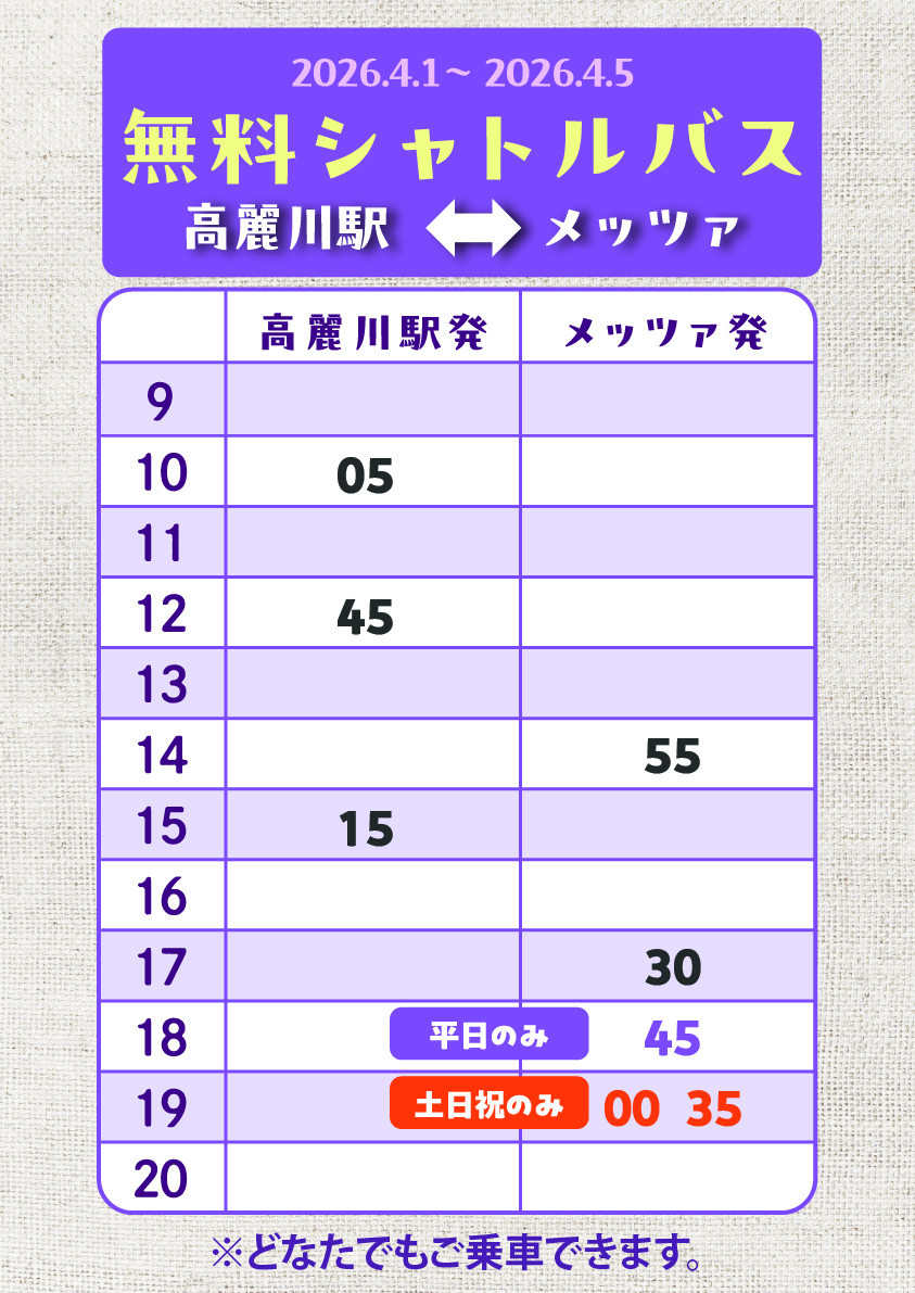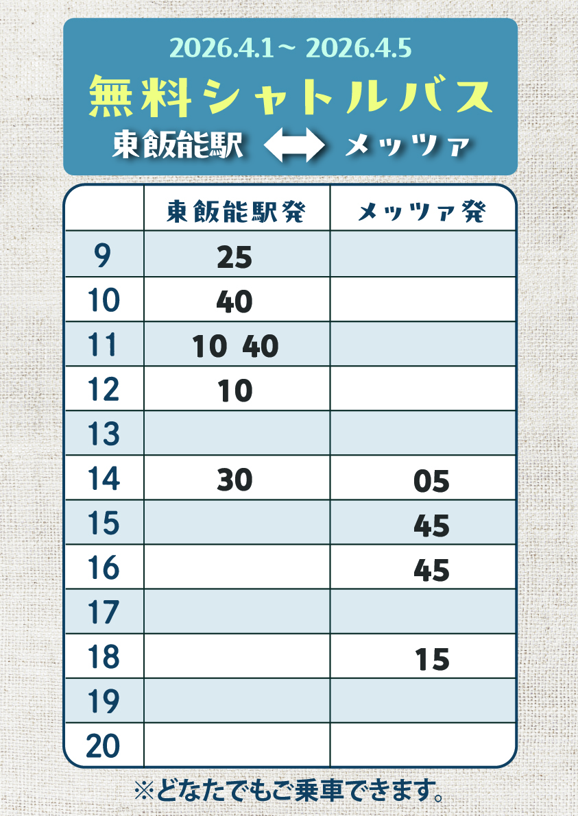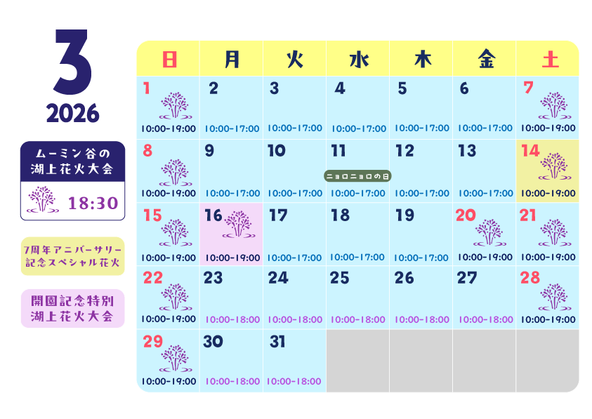 お知らせ 2026.03.01 【3月】営業時間カレンダー更新のお知らせ2026 ■営業時間カレンダー ■「エンマの劇場」公演カレンダー ■「飛行おにのジップラインアドベンチャー」営業時間カレンダー ■無料シャトルバス・直行バス時刻表