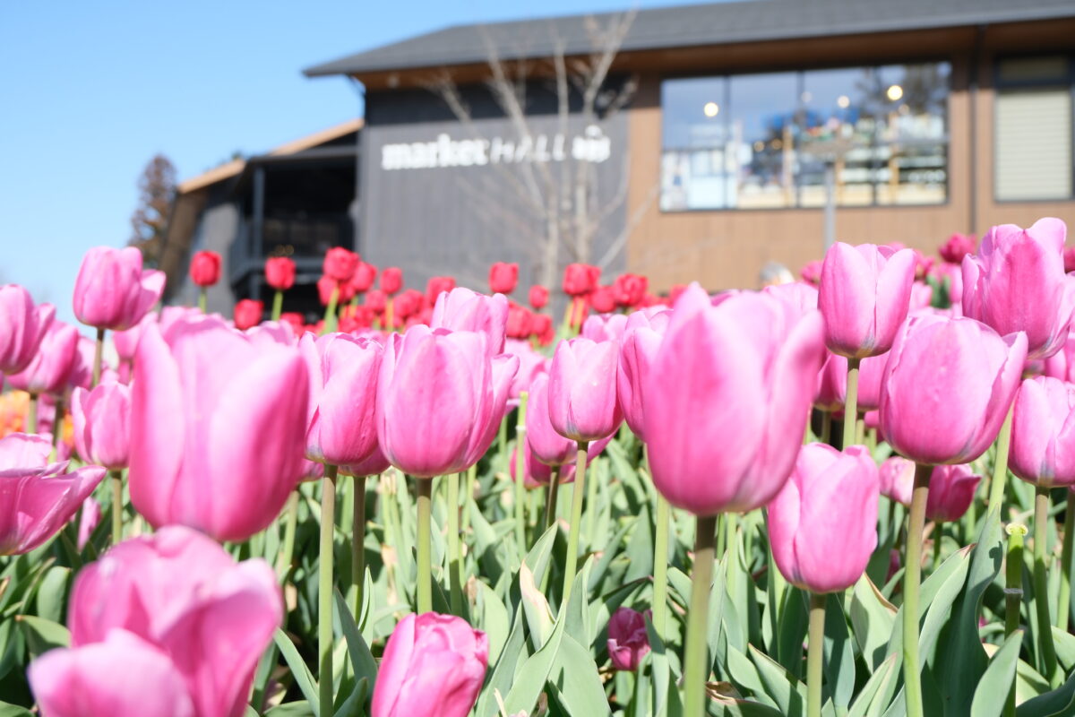 【3月15日(日)更新】チューリップの開花状況により、当日1,000円(税込)以上お買い物をしたレシートをご提示いただくことなく、12:30以降会場にお越しいただいた方にチューリップ5本を、またメッツァビレッジのSNS(X・Instagram)をフォローしていただくと、さらに2本プレゼントいたします。