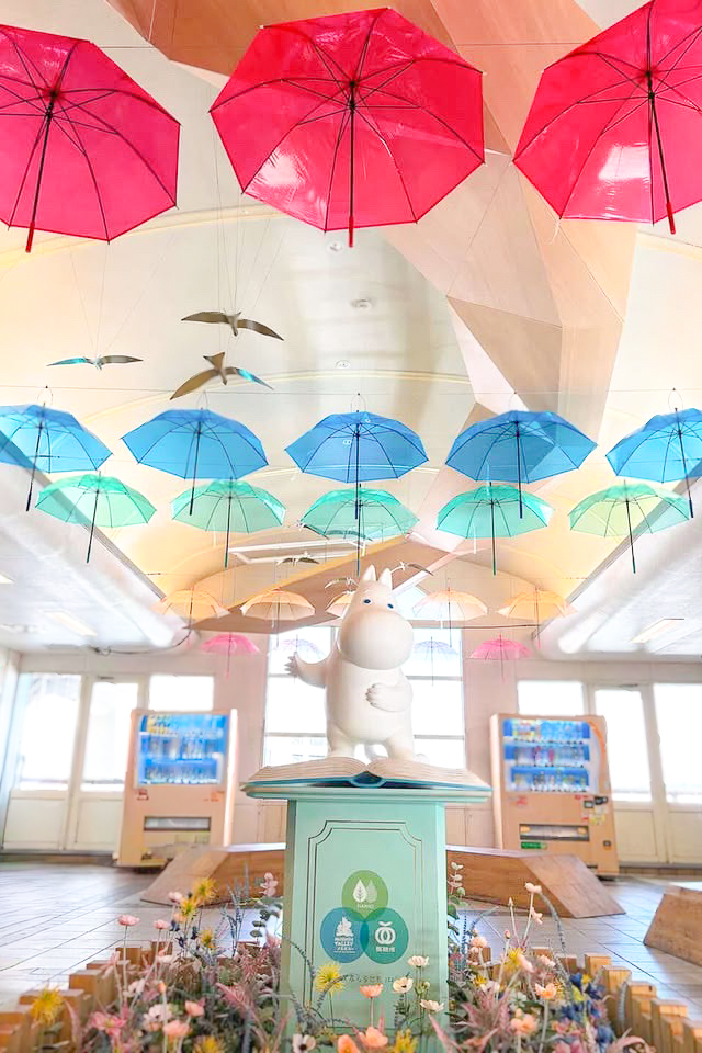 パーク全体を彩る色とりどりのアンブレラと同じモチーフの装飾を駅構内にも展開をすることで、駅を降りた瞬間からムーミンバレーパークの世界観を感じていただけるよう、飯能駅をより一層魅力的な空間に演出します。