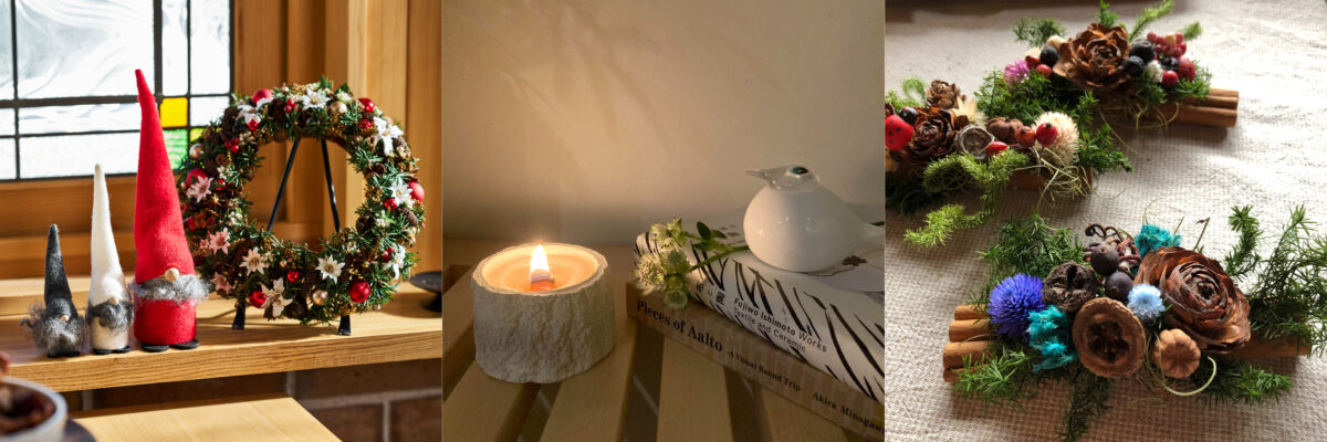 Livet Plaza(北欧雑貨)、WAFIN(キャンドル)、花工房mooi(リースやスワッグ)