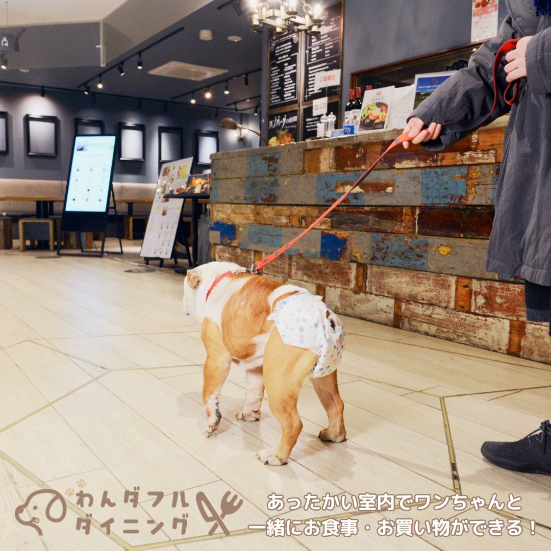 1.あったかい室内で愛犬を連れてお食事ができる「わんダフル ダイニング」