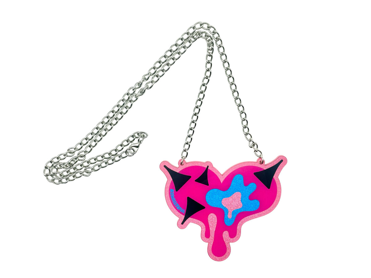 ダイカットデザインのハートモチーフが特徴的なグリッターネックレス。