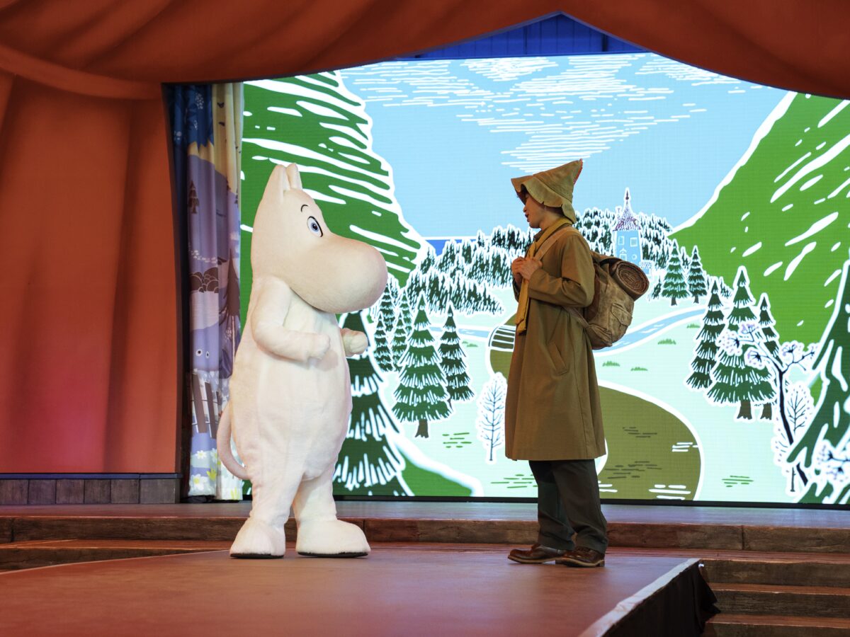 新プログラム『Dance-time with Friends』は、日によって異なるキャラクターが登場するライブ感あふれるダンスプログラム。内覧会でのお披露目では、大人気の「ご先祖さま」と「トゥーティッキ」が登場し、ムーミンバレーパークオリジナルソングに合わせたダンスで会場を盛り上げました。