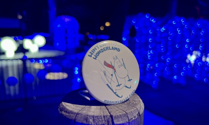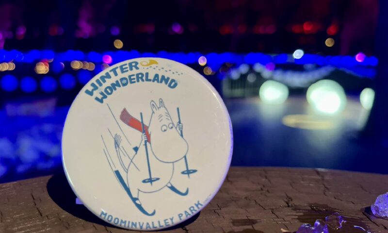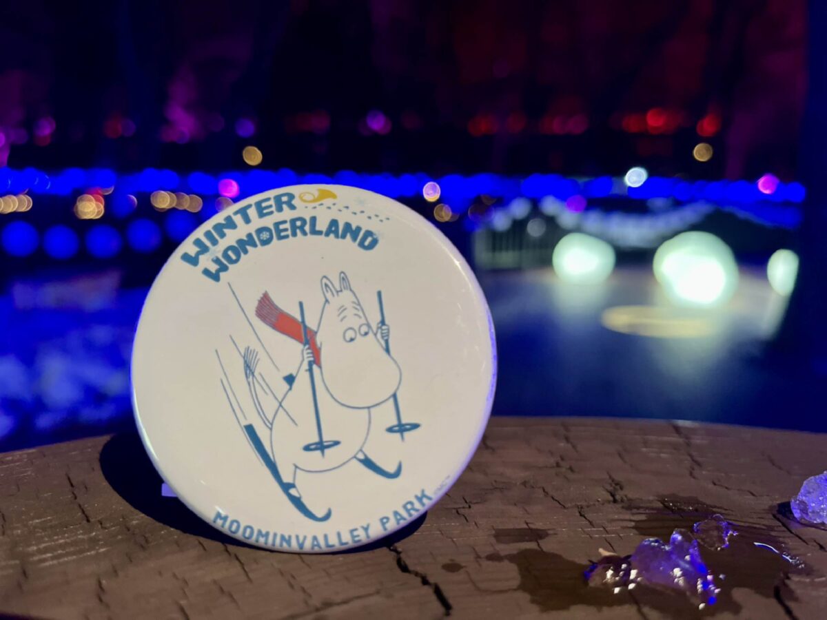 WINTER WONDERLAND柄はワークショップ限定!困ったお顔でスキーをするムーミンが大きく描かれているかわいらしいデザインです!お子さまでもかんたんにつくれてお土産にもぴったり!みなさんぜひご参加ください!